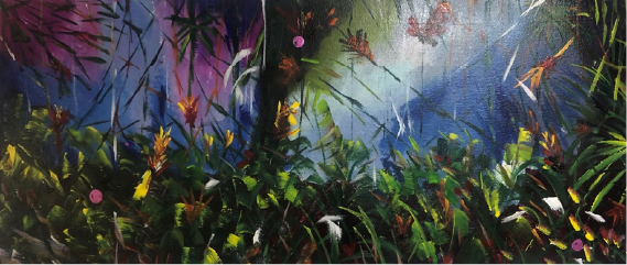 Bogotana que por medio de ‘’LA SERIE NATURALEZA, nos traslada a un mundo maravilloso donde encontramos la suavidad de las atmosferas, en contraste con los trazos enérgicos que impactan por su firmeza y su vitalidad, el paisaje deja de ser el motivo y cobra importancia la expresión artística de un espíritu sensible con gran fuerza expresiva.’’